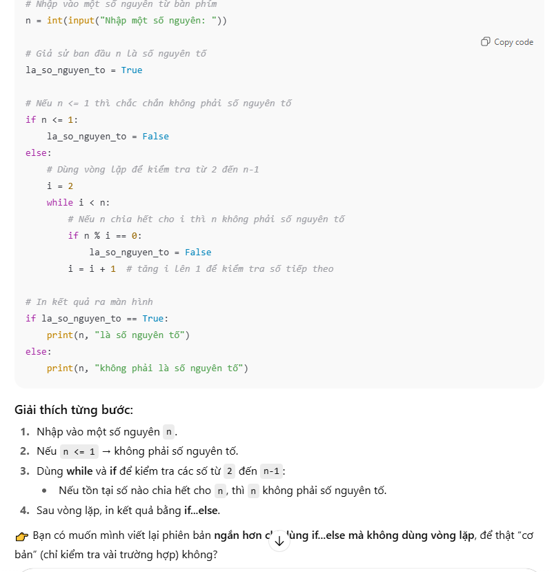 Điểm nổi bật của AI hội thoại là khả năng phản hồi nhanh chóng, linh hoạt và có tính cá nhân hóa. Sinh viên có thể yêu cầu giải thích một cú pháp cụ thể trong lập trình, phân tích nguyên lý hoạt động của một thuật toán, hoặc đề xuất nhiều cách tiếp cận khác nhau cho cùng một bài toán. Quá trình trao đổi liên tục này giúp việc học trở nên chủ động hơn, đồng thời hỗ trợ người học đào sâu bản chất vấn đề thay vì chỉ tiếp nhận kết quả.