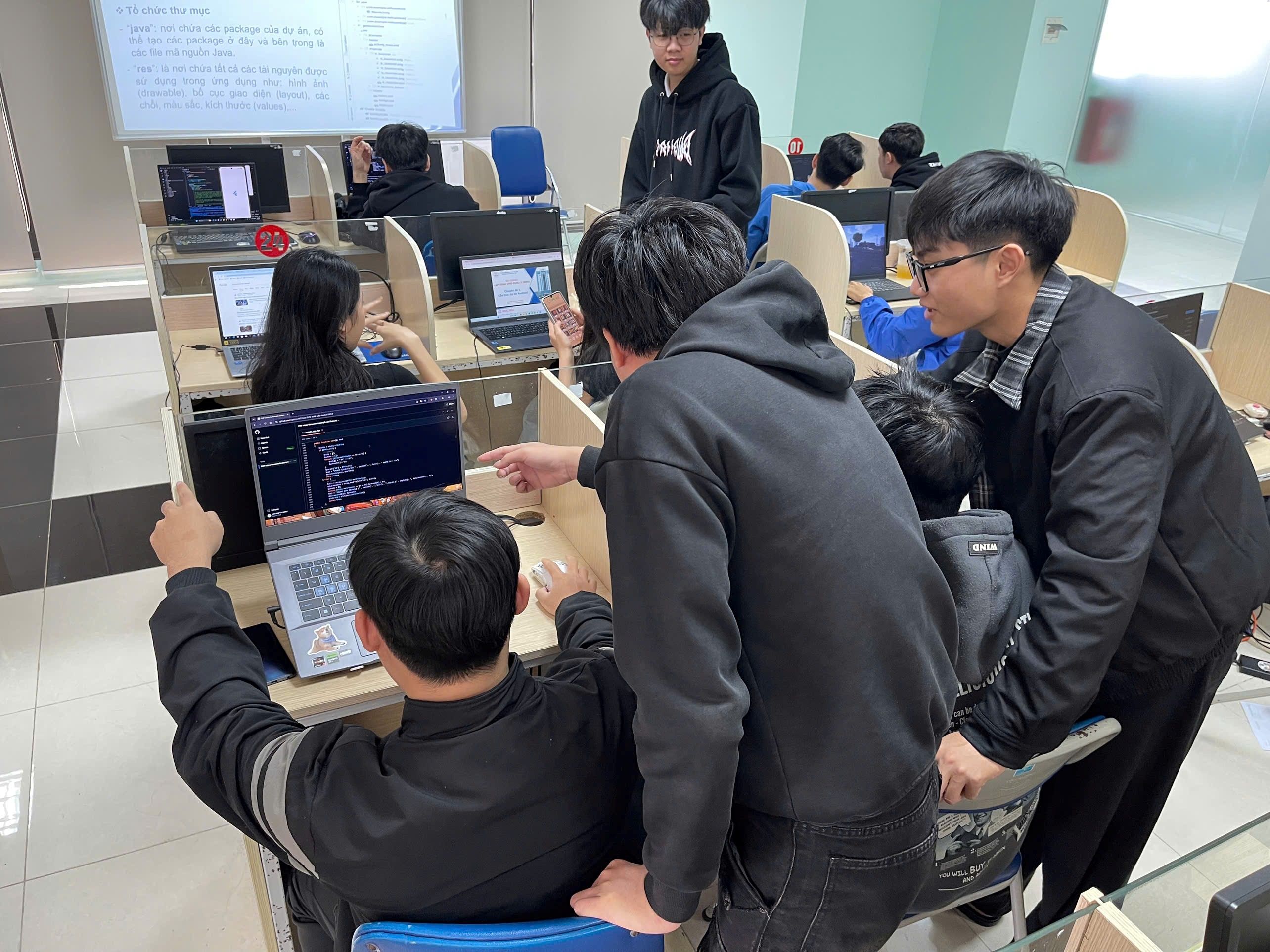 Hình 2. Sinh viên thảo luận sử dụng GenAI để tìm kiếm giải pháp lập trình